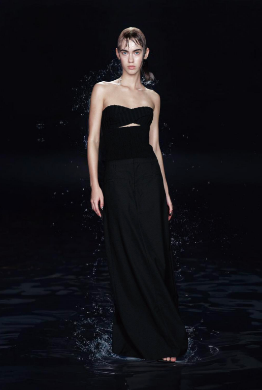 MAYALI Splicing edge workwear long skirt(Rear fork)